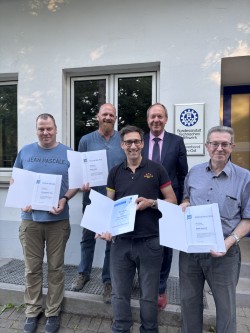 Im Bild: Stephan (10 Jahre Zugehörigkeit), Boris (30 Jahre), Ralf (25 Jahre), Peter (40 Jahre), Martin (Ortsbeauftragter)